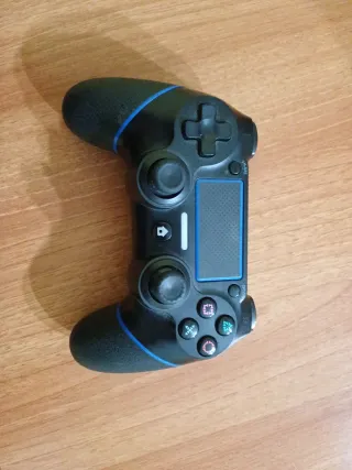 Mando de control para PlayStation 4 en color negro. Presenta detalles en azul que le dan un toque distintivo. SE VENDE AVERIADO,NO CARGA NADA.LO VENDO PARA PIEZAS O QUIEN SEPA ARREGLARLO. - Diseño ergonómico. - Botones frontales y direccionales. - Sticks analógicos.