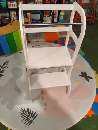 NO SE HACEN ENVÍOS Torre de aprendizaje Montessori con diseño 2 en 1. Torre + pupitre con asiento - Estructura de madera blanca. - Barra de seguridad metálica. - Dos niveles de altura.