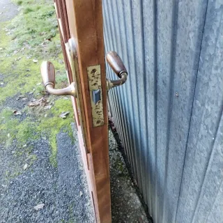 Puerta interior de madera con detalles de cristal. alto 200 cm ancho 82cm grosor 3,5 cm - Marco de madera. - Bisagra metálica.