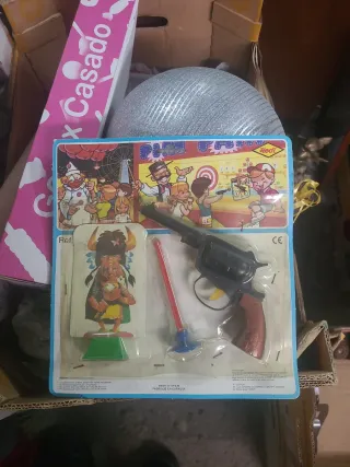 Pistola de juguete antigua de la marca Hedi, fabricada en España. - Diseño clásico de vaquero. - Incluye figura de indio como Diana - Empaquetado original. Blister sin ser jugado Se envía mediante Wallapop