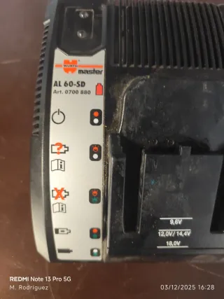 Cargador de baterías Wurth. - Modelo: AL 60-DS - Referencia: Art. 0700 880 - Voltajes compatibles: 9,6V, 12,0V/14,4V, 18,0V - Funciona perfectamente. - No negociable.