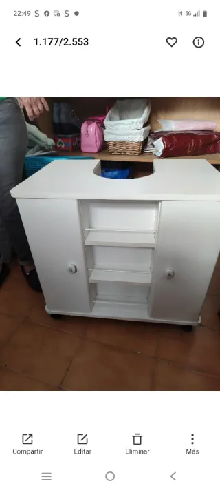 Mueble bajo para lavabo con un diseño moderno y funcional. - Acabado en color blanco. - Fabricado en madera. - Cuenta con dos puertas laterales y estantes interiores.