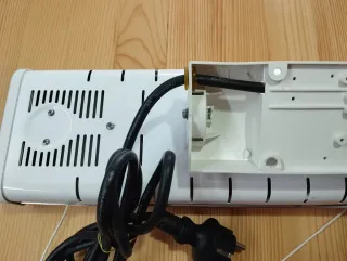 Calefactor por infrarrojos de dos tubos. Dispone de dos potencias para dar más o menos calor. Se puede poner en el suelo o instalar en la pared. Es estupendo para ponerlo cerca del cambiador del bebé para que no se enfríe o colgarlo en el baño para calentar el baño durante la ducha. O en una habitación en el suelo. Mide 54 cm x 13 cm. Mira mi perfil, tengo muchas cosas. Calefactor de diseño moderno y compacto. - Rejilla protectora frontal. - Indicador de funcionamiento.