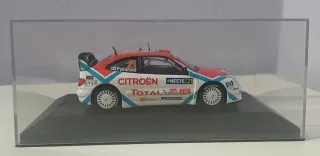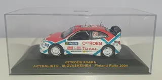 Réplica del Citroën Xsara WRC de J-Pykalisto y M. Ovaskainen en el Rally de Finlandia de 2004. - Modelo a escala 1:43. - Rally Car Colection. - Incluye base expositora con nombre del piloto y evento. Le falta una antena y tiene marca de pegamento en el techo al intentar pegarla.