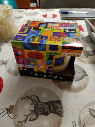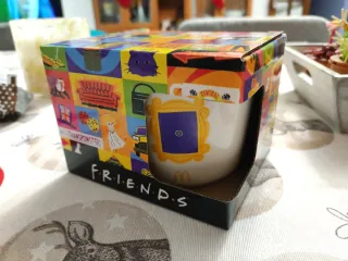 Taza de la serie Friends, con diseño inspirado en McDonald's. Presentada en su caja original. - Ilustraciones de escenas y frases icónicas de la serie. - Logo de Friends en la base. - Caja y taza en perfecto estado, nunca usada.