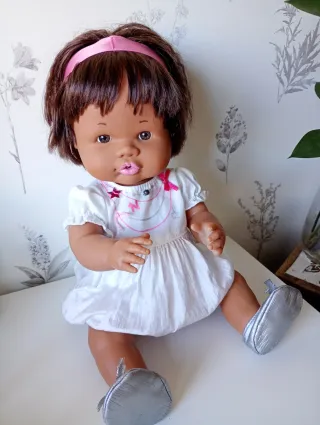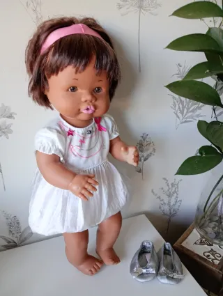 Muñeca Nenuco con un bonito vestido blanco y diadema rosa( se puede ver con el precinto) Nenuca africana descatalogada,mide 42 cm. Ropa y zapatos originales de Nenuco . - Vestido blanco con detalles. - Diadema rosa. - Zapatos plateados incluidos.