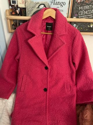 Abrigo de pelo rizado en color rosa fucsia para niña de la marca Desigual. - Diseño con solapas. - Cierre de botón. - Bolsillos laterales. Tiene poco uso y está en muy buen estado.