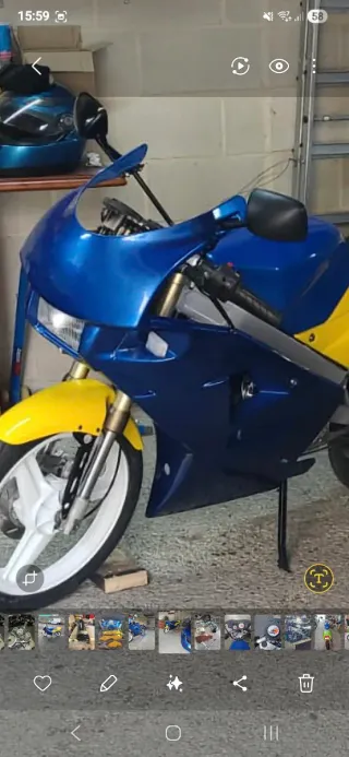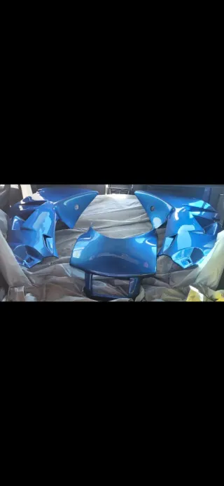 Conjunto de carenados para moto Mecatecno CR7-8 en color azul. Están reparados y tienen agujeros de tornillos porque no encajaban bien..se ve que le hecharon demasiado producto o no se pero no encajaban y tuve que adaptarlos.Ideal para algun manitas. Ojo...solo los laterales y la careta sin cupula. El que tiene esta moto sabe los recambios que hay así que no marear. Gracias - Piezas de plástico brillante. - Diseño deportivo.