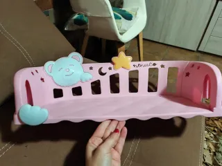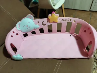 Cuna de juguete Nenuco en color rosa, con un dulce diseño. - Incluye un osito y una estrella decorativos. - Presenta detalles de lunas y estrellas. - Luz con diferentes colores y música. - Con sabana y almohada de Nenuco