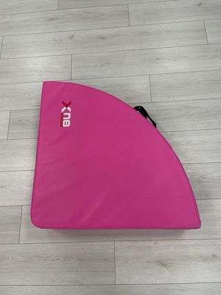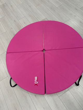 Esterilla circular de color rosa, diseñada para la práctica de pole dance. Se divide en cuatro secciones para facilitar su transporte y almacenamiento. - Diseño circular. - Color rosa vibrante. - Logo de la marca XNB visible.
