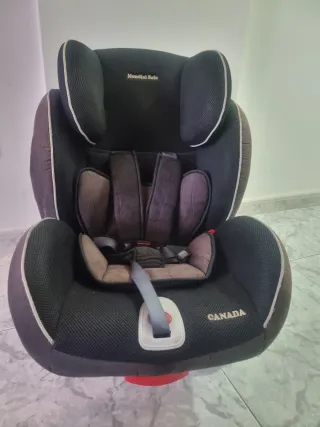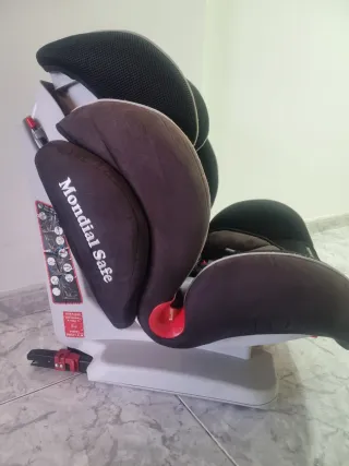 Silla de coche de la marca Mondial Safe, con sistema Isofix. - Tapicería en color negro y gris. - Incluye arnés de seguridad de 5 puntos. - Reposacabezas ajustable. - Funda extraíble para lavado.