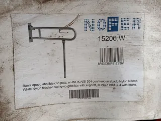 Barra de apoyo abatible con pata para baño, modelo 15206.W. - Acabado en Nylon blanco. - Fabricada en INOX AISI 304. - Incluye freno. Con unas pequeñas zonas con oxido como se aprecia en las fotos