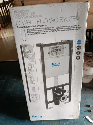 Sistema de instalación In-Wall para WC de la marca Roca. Diseñado para una instalación empotrada. - Estructura metálica y componentes de plástico. - Incluye cisterna y soporte. - Ideal para baños modernos.