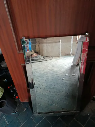Espejo de baño con un diseño moderno y elegante. - Marco de metal plateado. - Superficie de vidrio. - Acabado transparente.