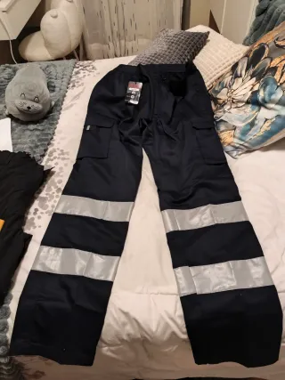 Pantalón de trabajo para hombre con detalles reflectantes. - Color azul marino. - Tira reflectante plateada en los bajos.