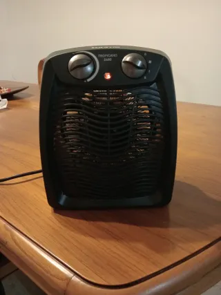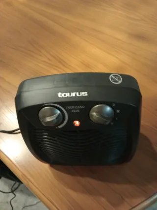Calefactor eléctrico Taurus Tropicano 2400. - Diseño compacto y moderno. - Dos niveles de potencia. - Termostato regulable, apagado automático en caso de caída, se vende sin caja ni instrucciones, tiene muy poco uso.