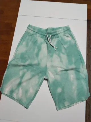 Pantalón corto con diseño tie-dye en tonos verdes y blancos. Perfecto para el día a día. - Cintura elástica con cordón. - Tejido suave y cómodo.