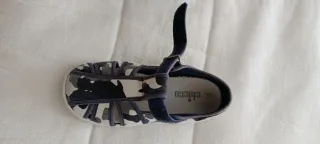 Sandalias de la marca Chicco para niño, talla 31. Con un diseño de camuflaje en tonos grises y multicolor. - Cierre de velcro. - Tira ajustable. - Suela cómoda.