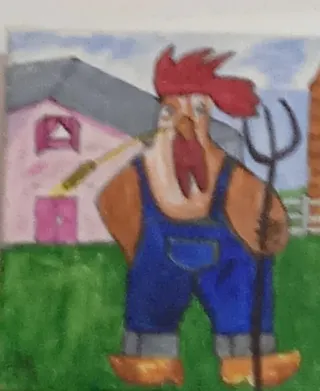 Colección de figuras Gallinacea. gallo granjero. gallo deportista, gallo enamorado se lucen ante La gallina presumida - Figura de tres gallos y una gallina presumida - Detalle de cresta y barbilla rojas.