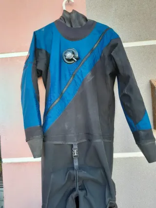 Traje seco de buceo Rofos con cremallera frontal. -Talla L larga (1'85cm/ 1'90cm) - Color azul y negro. - Cuello y puños de látex. - Cremallera frontal diagonal. -Gorro y Bolsa de trasporte incluidos. -Valvulas Sitech. -Precio negociable