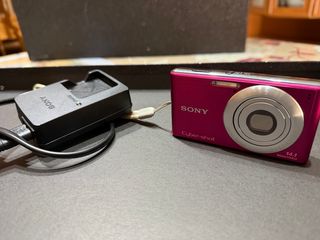 Cámara digital compacta Sony Cyber-shot en color rosa. Incluye cargador. - Resolución de 14.1 megapíxeles. - Lente Vario-Tessar.