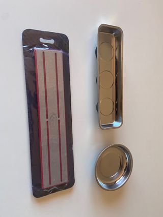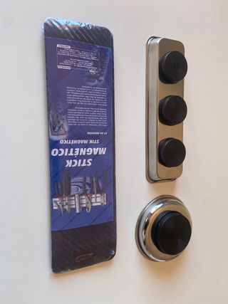 Set de bandejas magnéticas y un stick magnético. - Bandeja rectangular con imanes. - Bandeja redonda. - Stick magnético.
