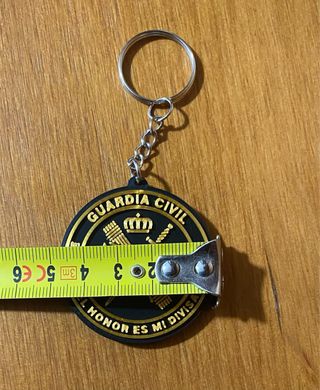 Llavero con el emblema de la Guardia Civil. - Diseño circular en color negro y dorado. - Incluye el lema El Honor es mi Divisa. - Símbolo de la Guardia Civil con la bandera de España. - Fabricado en plastico
