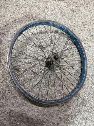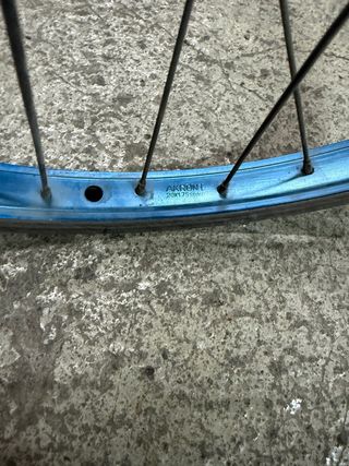 Llanta de bicicleta akront de color azul, 28 radios - Fabricada en España. - Medida 20x1.75.