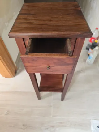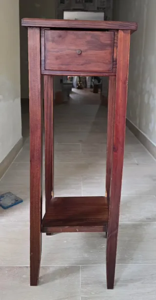 Elegante mesita auxiliar de estilo clásico, perfecta para cualquier rincón. - Fabricada en madera. - Acabado en tono marrón oscuro. - Cuenta con un práctico cajón. - Dispone de un estante inferior adicional.