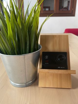 Cámara de acción Victure en color negro. - Soporte de madera incluido. - Grabación en 4K. - Conectividad Wi-Fi.