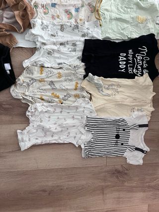Lote variado de ropa para bebé, ideal para las etapas de 6 a 12 meses. - Principalemente de 9-12 meses. - Variedad de estilos y colores. - Prendas cómodas para el día a día. 2€/prenda - mínimo 10 Lote entero : 35€