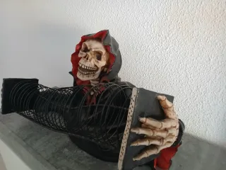 Original organizador de CDs con diseño de calavera. - Estructura metálica. - Detalles en rojo y negro. - Ojos con luces y sonido. Funciona con pilas.