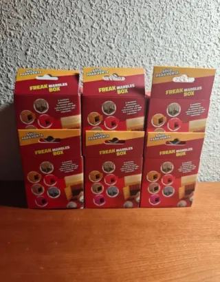 Se venden cajas de coleccionables FREAK MARBLES. Completamente nuevas, cada una en su caja. - Incluye los seis tipos de cajas. - Ideal para coleccionar, apilar y exhibir. Precio final #30€#