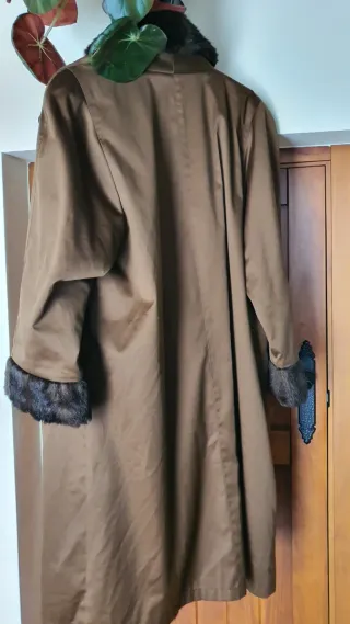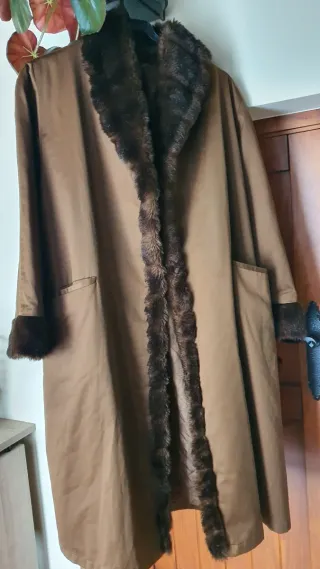 Elegante abrigo vintage con detalles de pelo Sintético.Impe a le prenda para disfrutar de lo de antes Date un capricho - Diseño clásico. - Acabado en color marrón. - Adornos de pelo en cuello y puños.