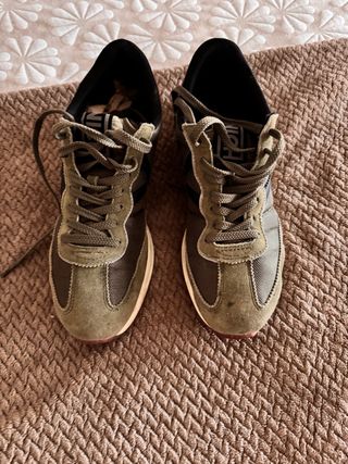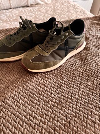Zapatillas deportivas Munich en color verde oliva y negro. Perfectas para el día a día. - Cierre con cordones. - Detalle de logo en la lengüeta. - Suela de goma. Están en perfecto estado ,solo tienen una marca en la puntera que se ve en la última foto