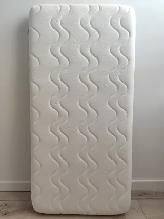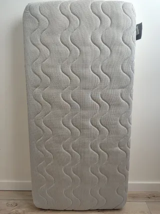 Colchón para cuna de la marca Ecus Kids, modelo Oxsi. Dos caras: invierno y verano. Adaptable y transpirable. Antiasfixia. Certificado OEKO-TEX®. Desenfundable y lavable. Altura 11 cm. Uso desde el nacimiento. Usado en contadas ocasiones, para segunda casa