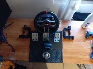 Volante de conducción compatible con PlayStation 4, PlayStation 5 y PC. Incluye pedales palanca de cambios y el volante - Volante con diseño deportivo. - Pedales de acelerador freno y embrague - Base con sistema de sujeción. - Conexión por cable. -imcliye un juego de camiones - tiene un solo uso es muy bueno para lo que lo necesito -me costó 300 nuevo ‼️Negociable‼️