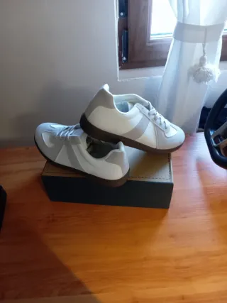 Zapatillas deportivas con un diseño moderno y cómodo. - Combinación de colores gris y blanco. - Suela de goma marrón. -nunca usadaS