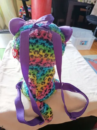 Adorable peluche Ty con diseño de mochila, perfecto para llevar contigo. Suave y tierno.