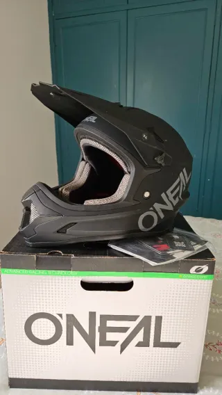 Casco integral de la marca O'Neal para niño, talla Y-L. Diseñado para ofrecer protección y comodidad. - Color negro mate. - Interior acolchado. - Visera ajustable. - Cierre de seguridad.