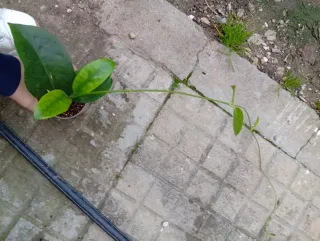 Planta Hoya Naumanii en maceta. - Hojas verdes con vetas. - Tallo largo y fino.