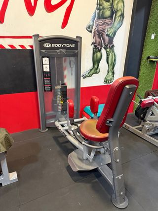 Máquina de gimnasio Bodytone para trabajar los abductores. Ideal para complementar tu rutina de ejercicios. - Diseño robusto y duradero. - Tapicería en color rojo. - Ajustes personalizables para el entrenamiento.