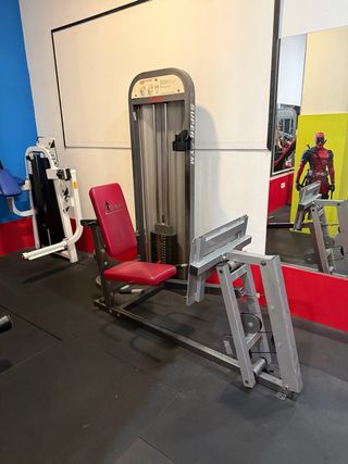 Equipo de gimnasio para trabajar pecho y tríceps. Estructura metálica robusta y asiento acolchado. - Asiento y respaldo en color rojo. - Agarres ergonómicos. - Base estable para mayor seguridad.