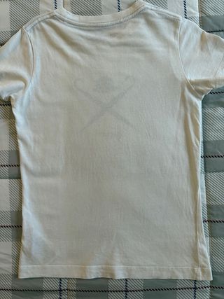 Camiseta blanca de la marca Hackett London con un diseño gráfico distintivo en el pecho. - Estampado de paraguas cruzados y bombín. - Logo de Hackett London.