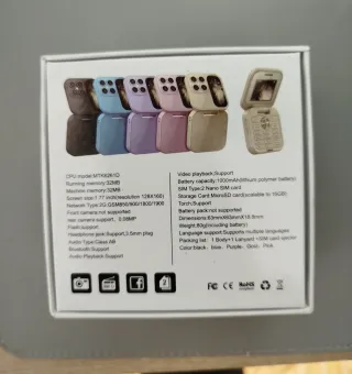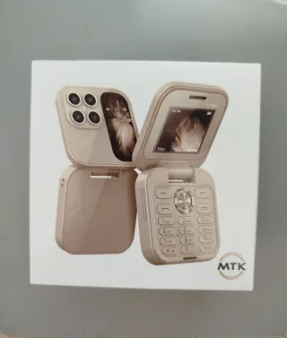 Teléfono móvil plegable con un diseño compacto y elegante. - Acabado en color beige y dorado. - Pantalla interior y exterior. - Teclado numérico físico. Abierto solo para probar. Solo venta en mano.
