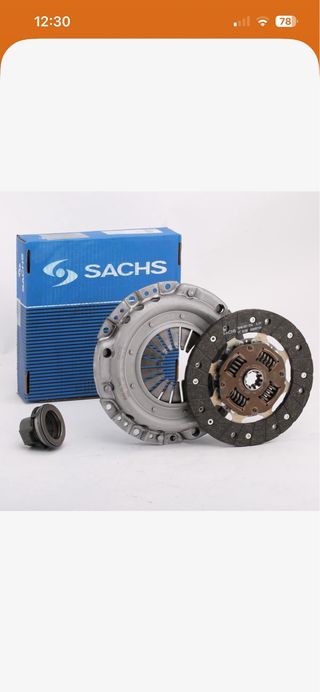 Kit de embrague de la marca SACHS. Incluye plato de presión, disco de embrague y cojinete. - Plato de presión SACHS. - Disco de embrague SACHS. - Cojinete de empuje SACHS.