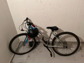 Bicicleta infantil de color azul, ideal para los más pequeños que están aprendiendo a pedalear. Cuenta con ruedines para mayor estabilidad. - Ruedas de color verde. - Puños de manillar verdes. - Sillín gris.