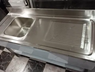 Fregadero industrial nuevo a estrenar, ideal para hostelería o negocios. - Medidas: 1500x600mm - 1 seno izquierdo de 40x40x25mm - Con bancada y 1 estante - Desmontable - Precio especial TARA: 345€ - Precio: 480€