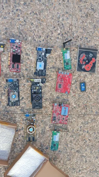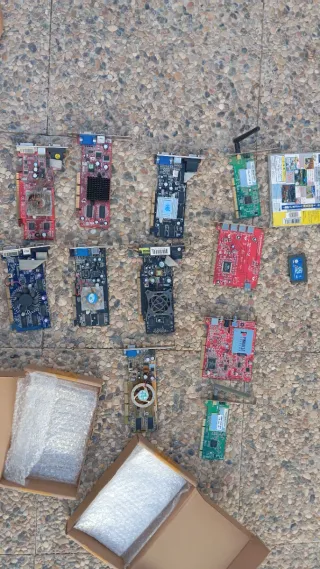 Se vende lote de tarjetas gráficas AGP y PCI Express, junto con algunos juegos retro. - Tarjetas gráficas variadas. - Incluye juegos clásicos para coleccionistas.