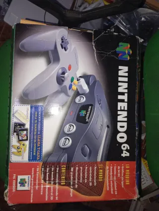 Consola Nintendo 64 en su caja original, lista para revivir grandes momentos. Incluye todos los cables necesarios para su conexión. - expansión pack ( solo 50/70€) - Mando de control 3D. - Fuente de alimentación. - Cable AV estéreo. - Euroconector.